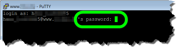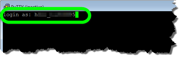 Das Fenster [Ihre Domain] - PuTTY wird angezeigt. Dieses Fenster ist bereits die Kommandozeile.